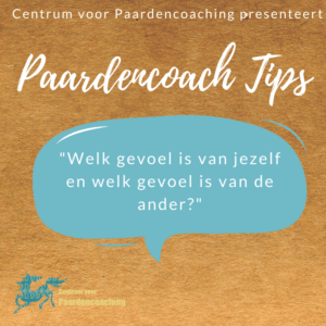 [PaardencoachTips] Gevoelens | Welk gevoel is van jezelf en welk gevoel van de ander? | Werkvormen Herken je dat, dat je als (paarden)coach je soms afvraagt of je iets voelt van jezelf of van de ander? Je hebt een brok in je keel, ben je zelf emotioneel of voel je het (onuitgesproken) verdriet … [Lees meer...] overVideo: Gevoelens | Welk gevoel is van jezelf en welk gevoel van de ander? | Werkvormen